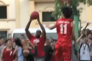 亲民!詹姆斯此前中国行与大学生球迷同场比赛 展示素质暴力劈扣