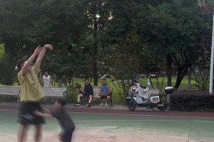 大姐这是练过?抱着娃单手轻松扔进三分