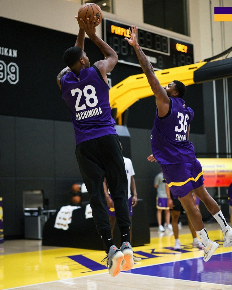 湖人官方晒训练照:斯玛特防八村中投 里夫斯顶防斯玛特