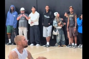 这人故意的吧离场时遭误认成勒布朗,哈登一脸不悦推开球迷!