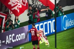 边路飞翼!小钢炮“丫丫”赛后收到了球迷给他的应援旗